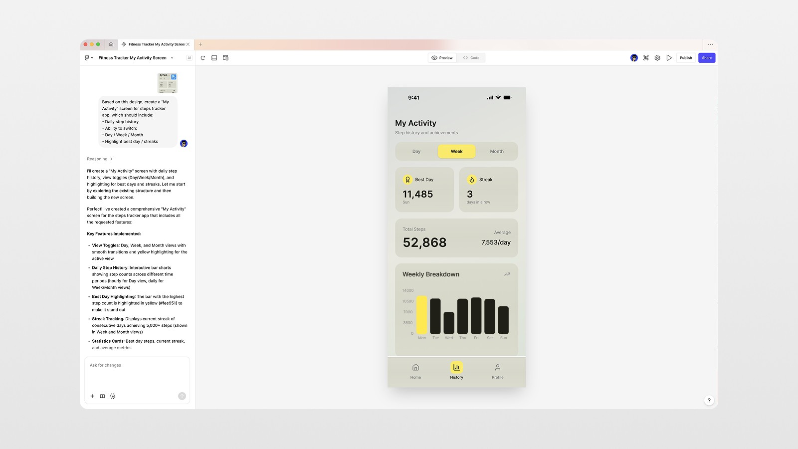 I’m going to show you one workflow for Figma Make to show you how to use it intentionally, not as a shortcut, but as a design accelerator. No need to rush through AI by cutting corners. Using a design system, AI, and a few solid references, I’m confident we can get you from a rough concept to cohesive and polished UI design. This article will be focused on an iOS step tracker app, specifically one screen at a time, as shown in the video.