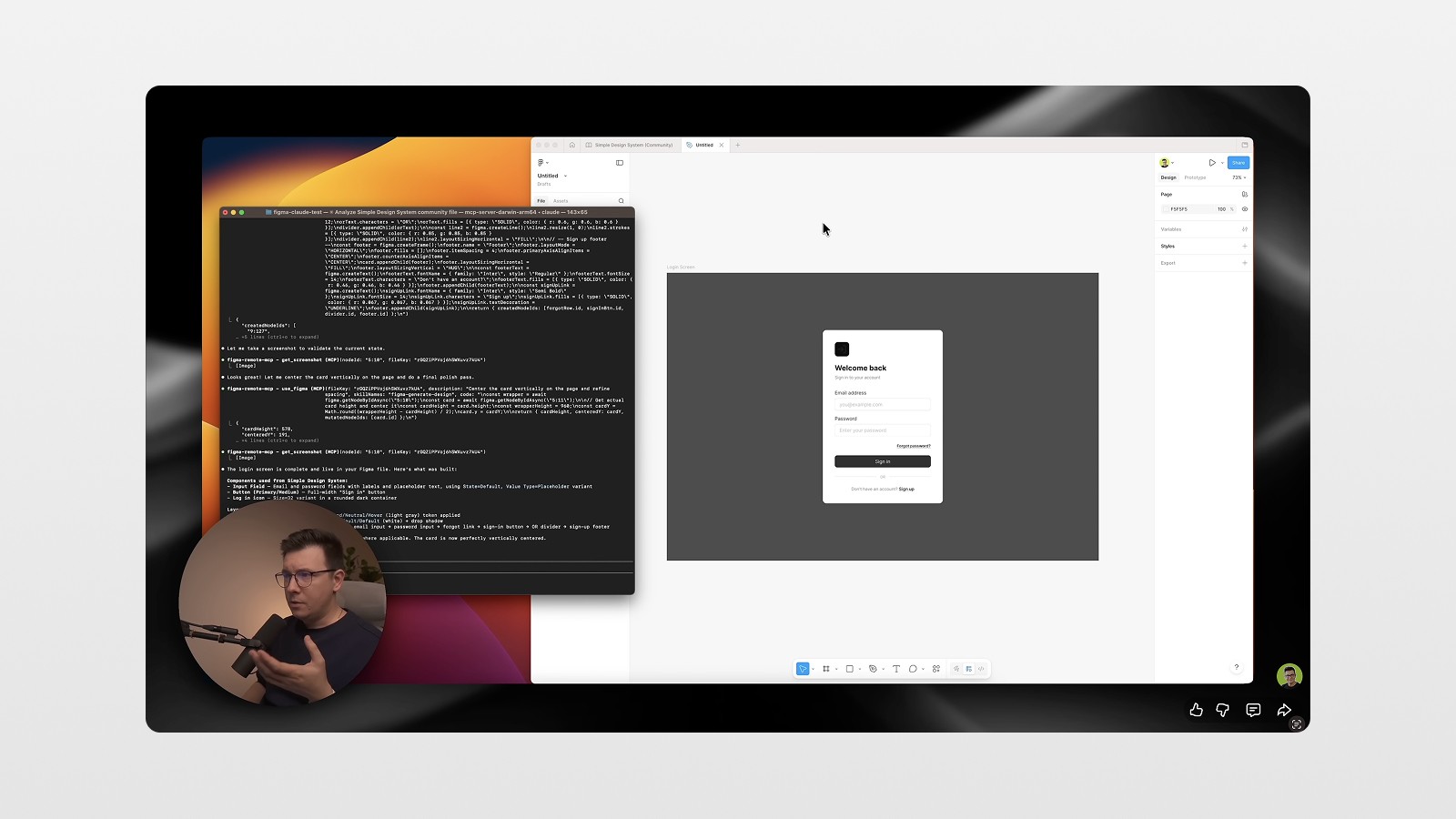 One interesting thing: the generated code used the black button, not the green one I had just changed. Why? Because in the design system's variables, the default brand color was still set to black. Claude caught that the green was a local override — not an official token update — and used the "correct" default instead. It thought the green was a mistake. 😬
