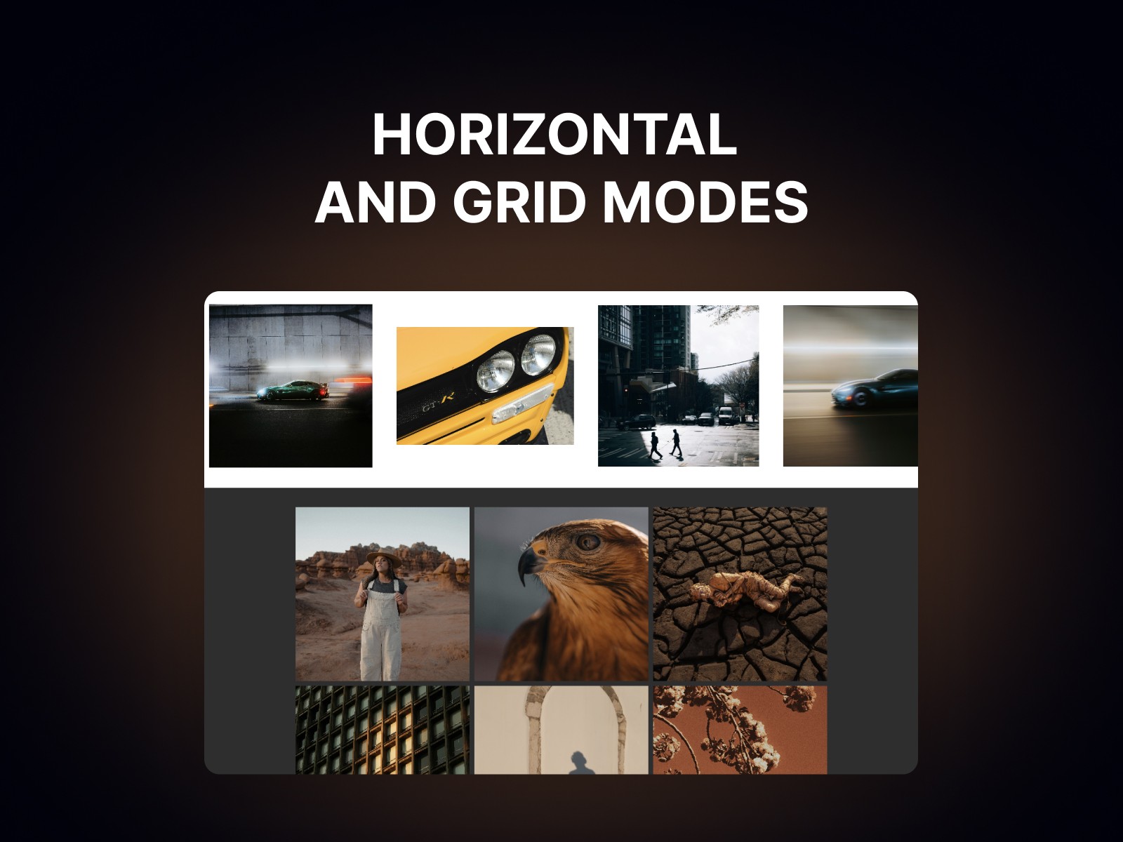 Choose between Horizontal Scroll or Responsive Grid modes. Fully adjustable columns, spacing, and alignment options.